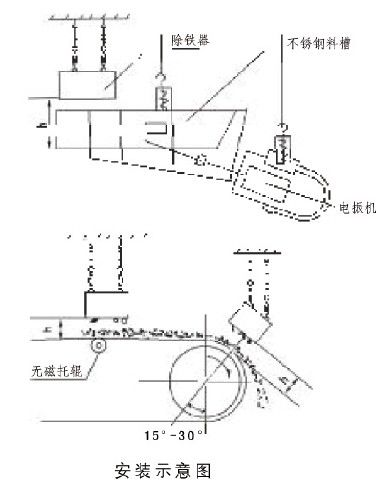 適用于皮帶輸送機、振動給料機、下料溜槽上的非磁性物料中除鐵。